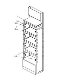 至少一可拆卸的層板組件,包括一層板本體、一光源和二導電條,所述光源和二導電條均設(shè)于層板本體下方,該二導電條分別傳導連接該光源的正負極;