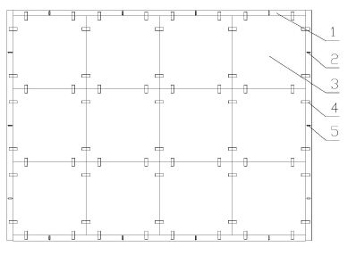b、將折疊橫桿1與折疊豎桿2展開,將折疊橫桿1與折疊豎桿2放置在拼裝好的大展板邊緣,并通過卡扣4將折疊橫桿1、折疊豎桿2與大展板上的卡口6連接在一起。